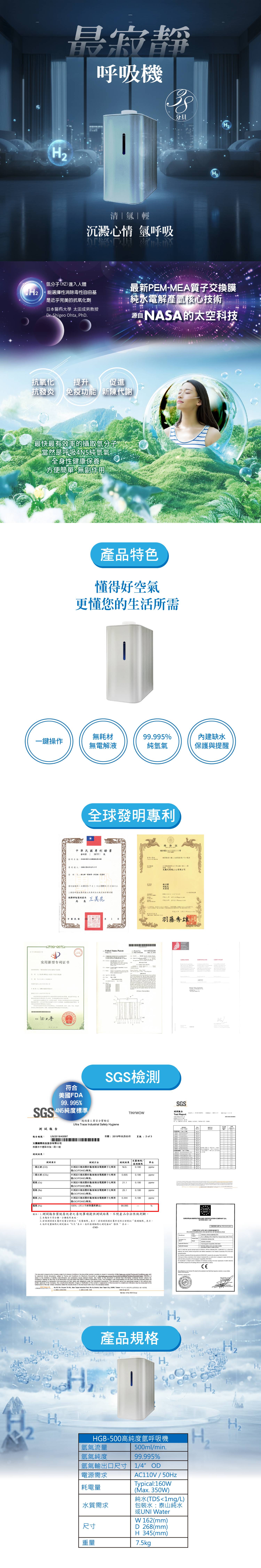 ●氫氣純度99.995%以上(SGS檢驗認證)